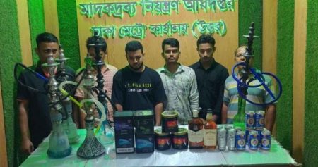 এ সময় ৩ কেজি সিসা, ৫টি হুক্কা, ২ লিটার বিদেশি মদ, ১২টি বিয়ার ক্যান এবং মাদক বিক্রির ১২ হাজার ৮৭০ টাকা উদ্ধার করা হয়। ডিএনসি আরও জানায়, গ্রেফতারকৃত আসামিরা প্রাথমিক জিজ্ঞাসাবাদে জানান, আবু সাইদ ও ইবনুল হাসান মনটানা সিসা লাউঞ্জের মালিক। নিজেদের দখলীয় অবৈধ সিসা বারে আগত অতিথিদের মাঝে আসামিরা পারস্পরিক সহযোগিতায় নিকোটিনযুক্ত সিসা, বিদেশি মদ ও বিয়ার বিক্রি ও সরবরাহ করতেন।