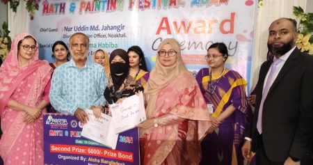 নোয়াখালীর জেলা শহর মাইজদির একটি কনভেনশন হলে আলোহা বাংলাদেশ এর দ্বিতীয় বর্ষপূর্তি উপলক্ষ্যে ম্যাথ Each পেইন্টিং ফেস্টিভাল ২০২৫ অনুষ্এঠিত হয়েছে। পুরষ্কার বিতরণ অনুষ্ঠানে প্রধান অতিথি হিসেবে উপস্থিত ছিলেন জেলা শিক্ষা অফিসার নুর উদ্দিন মোঃ জাহাঙ্গীর, বিশেষ অতিথি হিসেবে উপস্থিত ছিলেন মোশারেফ গ্রামার স্কুল এর প্রধান শিক্ষক রোকসানা মাসুদ, প্রভাতী শিশু শিক্ষার প্রধান শিক্ষক লায়লা তারেক।