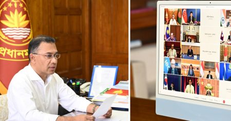 আজ বুধবার অনুষ্ঠিত এশিয়া জিরো এমিশন কমিউনিটি (এজেডইসি) প্লাস অনলাইন সামিটে বক্তব্য দিতে গিয়ে তিনি বলের, ‘বর্তমান পরিস্থিতি জরুরি পদক্ষেপ, ঐক্যবদ্ধ এবং দৃঢ় সিদ্ধান্ত গ্রহণের দাবি রাখে। সবচেয়ে ঝুঁকিপূর্ণ দেশগুলোর জন্য জরুরি সহায়তা নিশ্চিত করা আমাদের সম্মিলিত এজেন্ডার শীর্ষে থাকা উচিত।’