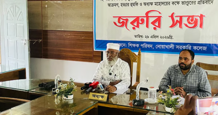 বুধবার দুপুর দুইটার দিকে নোয়াখালী সরকারি কলেজে এ ঘটনা ঘটে। শিক্ষক পরিষদের নেতাদের অভিযোগ, কলেজের বিভিন্ন উন্নয়নকাজ ও পরীক্ষার ফি সংক্রান্ত বিষয়ে চাঁদা না দেওয়ায় কিছুদিন ধরে ছাত্রদলের কিছু নেতাকর্মী কলেজে অস্থিতিশীল পরিস্থিতি তৈরি করছিলেন। বুধবার অধ্যক্ষসহ কয়েকজন শিক্ষক কার্যালয়ের একটি কক্ষে দুপুরের খাবার খাচ্ছিলেন। এ সময় ছাত্রদলের কয়েকজন নেতাকর্মী অধ্যক্ষের কক্ষে ঢুকে তাদের গালমন্দ করেন। পাশাপাশি তারা খাবারের টেবিল থেকে শিক্ষকদের উঠে যেতে বাধ্য করেন। এক পর্যায়ে তারা বাংলা বিভাগের সহযোগী অধ্যাপক মুনশাদুর রহমানকে শারীরিকভাবে লাঞ্ছিত করে তাঁর শার্টের বোতাম ছিঁড়ে ফেলেন। ইসলামিক স্টাডিজ বিভাগের সহযোগী অধ্যাপক আনোয়ার হোসেনকে হত্যার হুমকি দেওয়া হয়। এ ঘটনায় শিক্ষকরা নিরাপত্তাহীনতায় ভুগছেন।